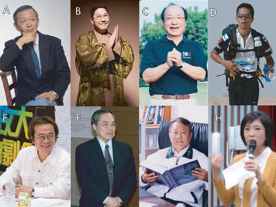 A李家同 B馮翊綱 C胡志強 D林義傑 E李國修 F陳芳明 G曾志朗 H方念華